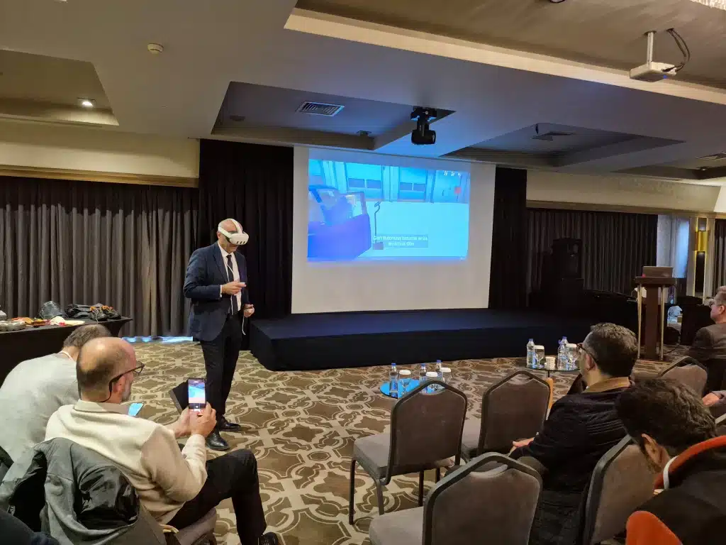 Program, Otomotiv Endüstrisi İhracatçıları Birliği Mesleki ve Teknik Anadolu Lisesi Otomotiv Alan Öğretmeni Fatih Köz’ün VR/AR Uygulamaların Kurulumu ve Örnek Bir Senaryo Tanıtımı ile devam etti.
